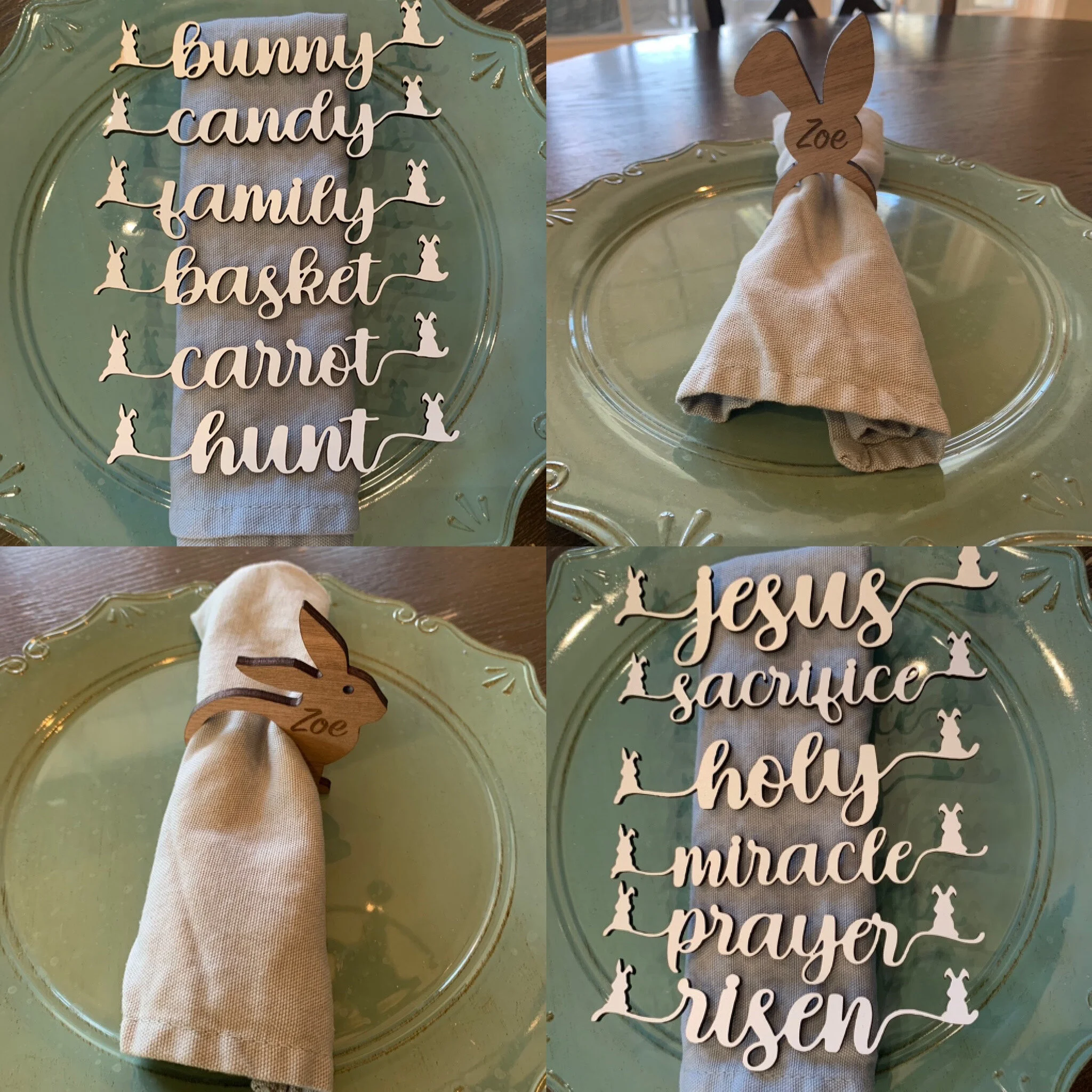 E02 Easter Plate words and personalized napkin rings